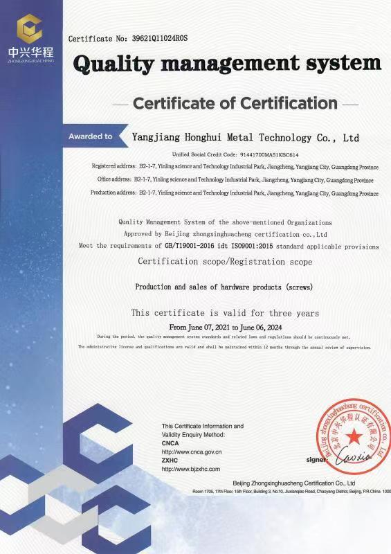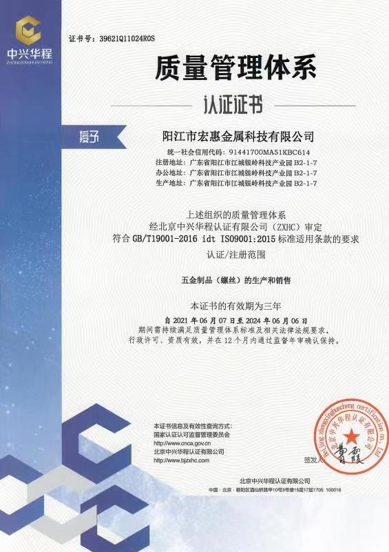 廣東宏惠金屬公司是家20多年一直專注鉆尾螺絲開發(fā)與生產(chǎn)的企業(yè),是國內(nèi)較早做鉆尾的廠家之一,同時也是國內(nèi)專業(yè)開發(fā)生產(chǎn)鉆尾螺絲的企業(yè)之一。 我司地址為于廣東省陽江市江銀嶺科技園距沈海高速白沙出口不到2公里,距陽江高鐵站也只有十余公里交通便利。 公司占地120畝,擁有超500臺套專業(yè)設(shè)計(jì) 生產(chǎn) 檢測設(shè)備。一個超200人的專業(yè)團(tuán)隊(duì),能夠嚴(yán)格按照ISO9001質(zhì)量體系要求生產(chǎn)符合GB DIN AS3566 ANSI JIS BS等標(biāo)準(zhǔn)的產(chǎn)品,生產(chǎn)銷售各種高品質(zhì)緊固件系列產(chǎn)品,為中高端客戶提供優(yōu)質(zhì)服務(wù)。也可按照客戶要求設(shè)計(jì)生產(chǎn)各種鉆尾,年產(chǎn)高品質(zhì)碳鋼 不銹鋼鉆尾螺絲2萬余噸.在各大客戶的鼎力支持下產(chǎn)品暢銷全國,并遠(yuǎn)銷亞 非 拉 歐等地,在這20多年發(fā)展的道路上我司堅(jiān)持“以質(zhì)量求生存,以信譽(yù)求發(fā)展”的精神理念不斷完善公司體系。
